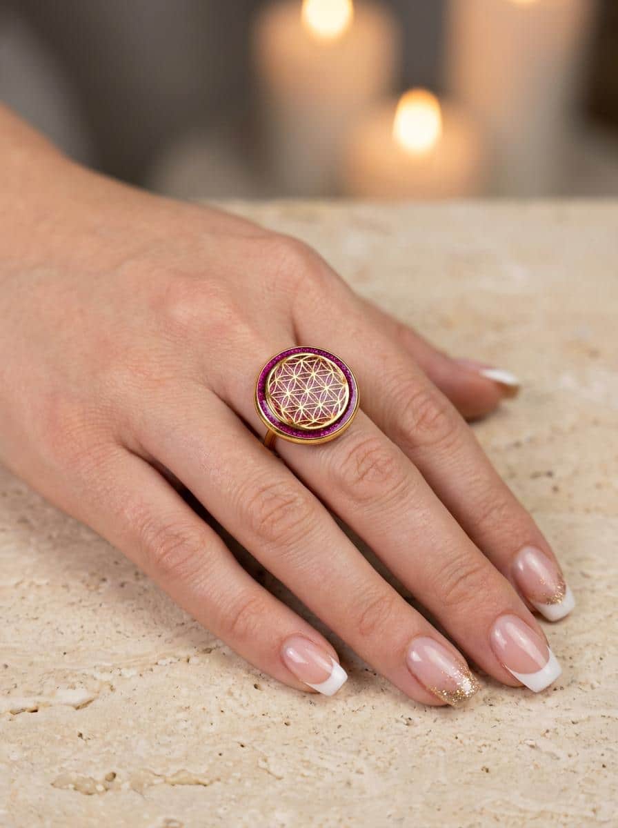 Bague Fleur de Vie Fuchsia « Éclat Intérieur »