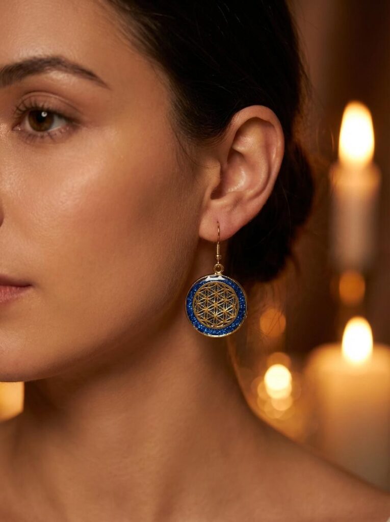 Boucles d’Oreilles Fleur de Vie Bleues « Ciel d’Énergie »